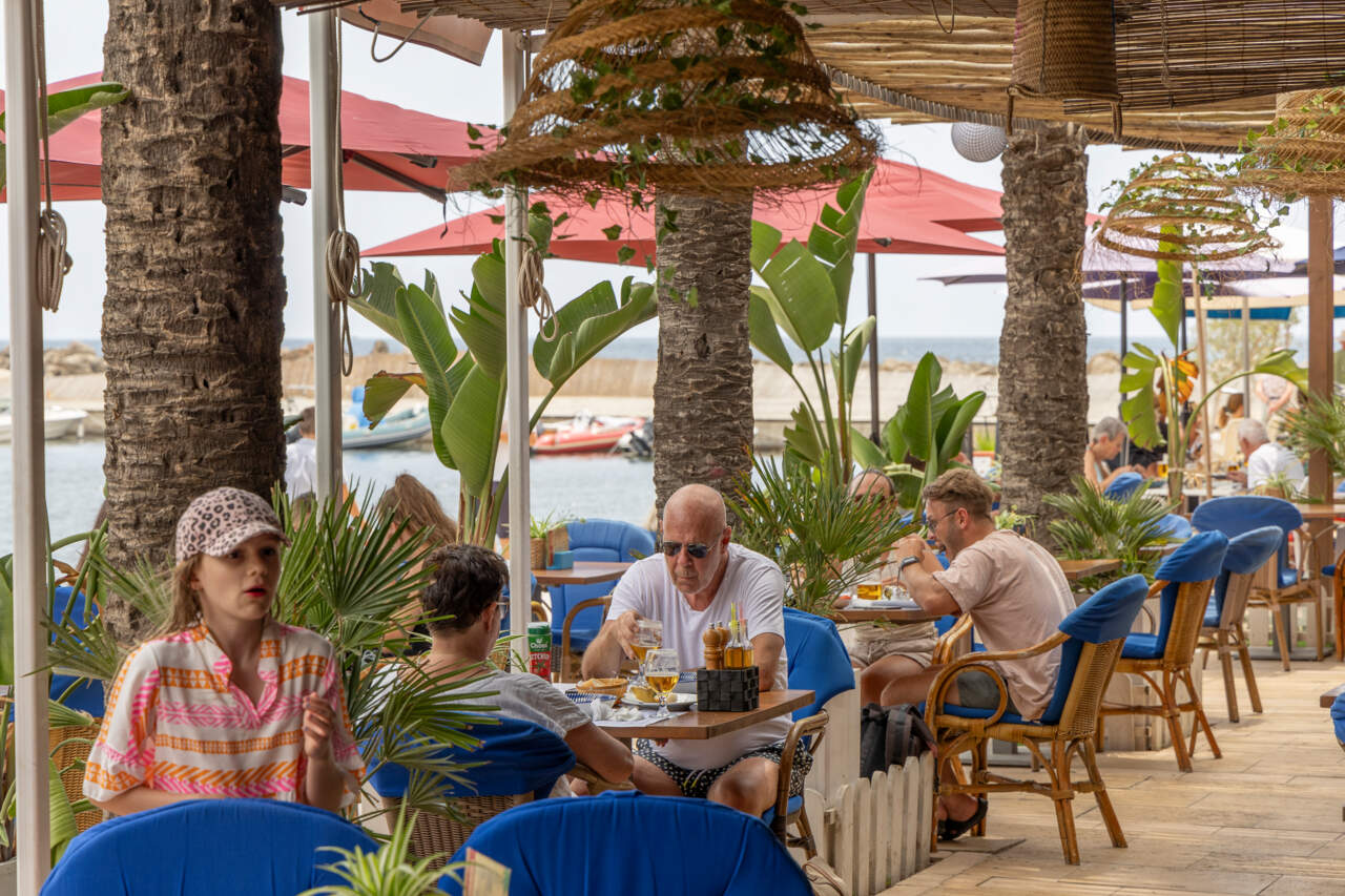 Roca Beach es un beach club frente al mar en Cala Estancia, Mallorca, que fusiona cocina mediterránea e internacional con música en vivo y DJs en un ambiente vibrante.